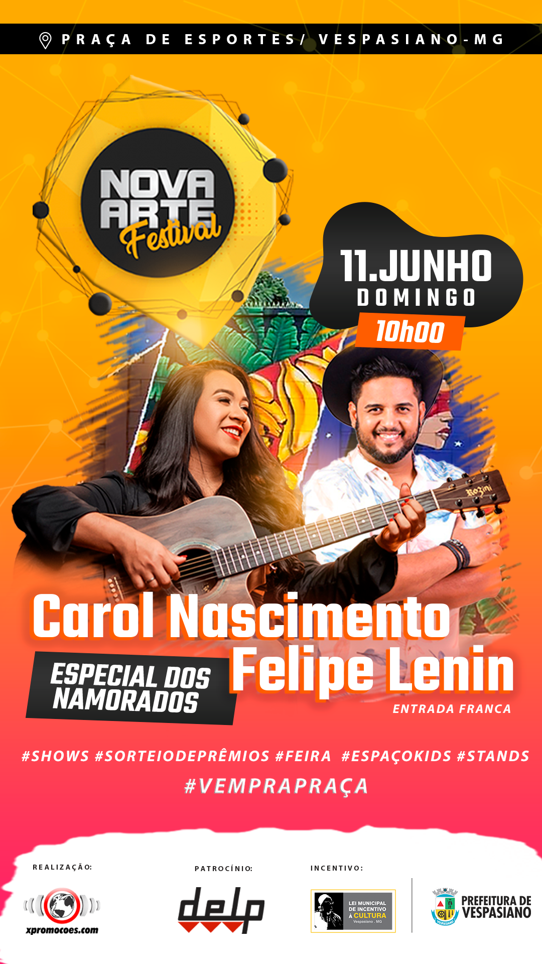 Carol Nascimento e Felipe Lenin na abertura do Nova Arte Festival 2023, no dia