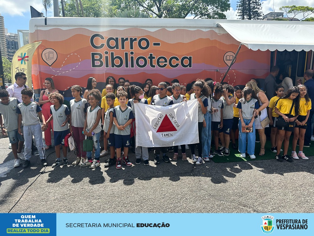 Cerca de 20 alunos da Escola Municipal Maria do Carmo Soares, no Bairro Sueli, participaram na manhã desta terça-feira, 28 de novembro, da entrega do Carro-Biblioteca, na Biblioteca Pública Estadual de Minas Gerais, em Belo Horizonte. O Vice-prefeito de Vespasiano, Zé Wilson, representando a Prefeita Ilce Rocha, participou do evento cultural que teve a presença do Governador de Minas Gerais, Romeu Zema, e do Secretário de Estado de Cultura e Turismo, Leônidas de Oliveira.